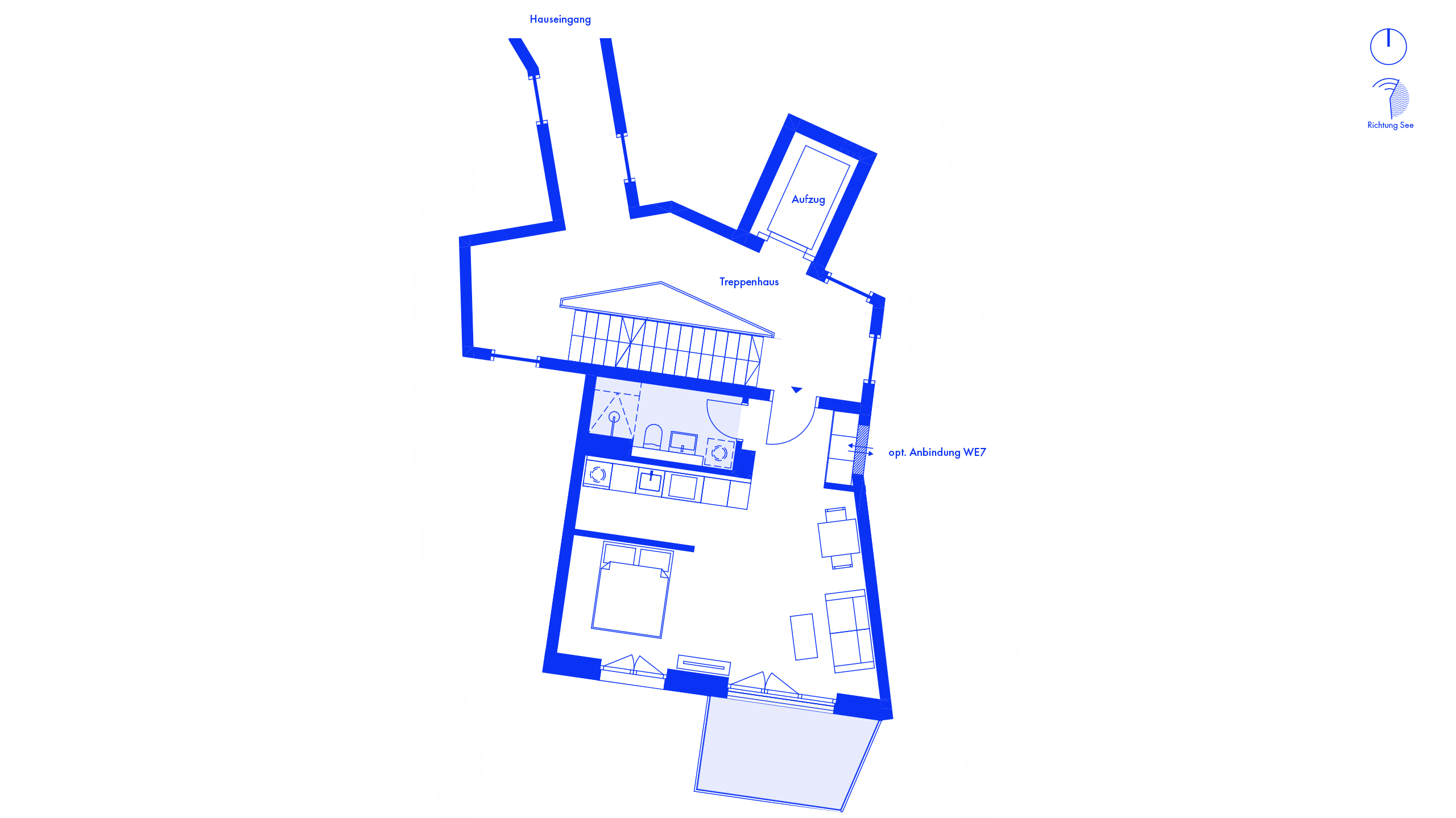 KlassikStudio – Für Singles oder Paare eignet sich ideal eine klassische 1-Zimmer-Wohnung im Ergeschoss mit Balkon. Der kompakte Grundriss bietet eine klare Raumstruktur und verbindet Wohnkomfort mit einem privaten Rückzugsort im Grünen – auch perfekt geeignet als erholsames Feriendomizil.